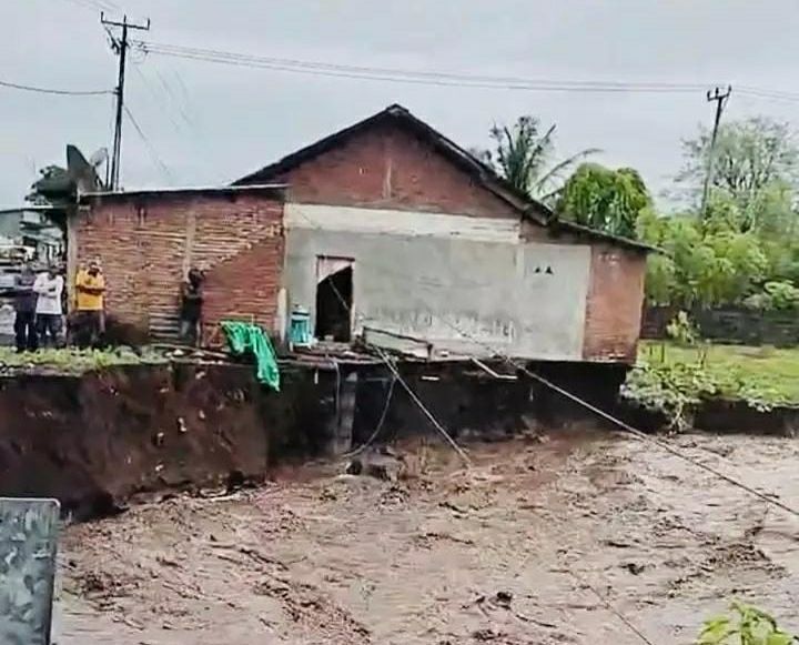 Di Desa Doropeti, satu unit rumah warga rusak berat setelah tergerus derasnya aliran sungai. Satu kepala keluarga dilaporkan terdampak langsung dan terpaksa kehilangan tempat tinggal.